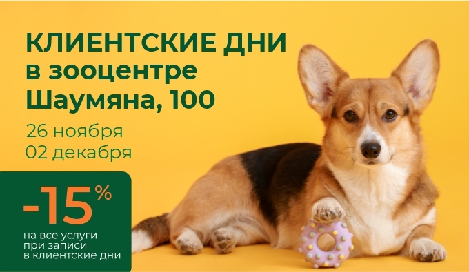А еще мы подарим скидку -15% на любую услугу зооцентра на Шаумяна 100, если сразу после посещения лекции вы запишете хвостика и внесете оплату.