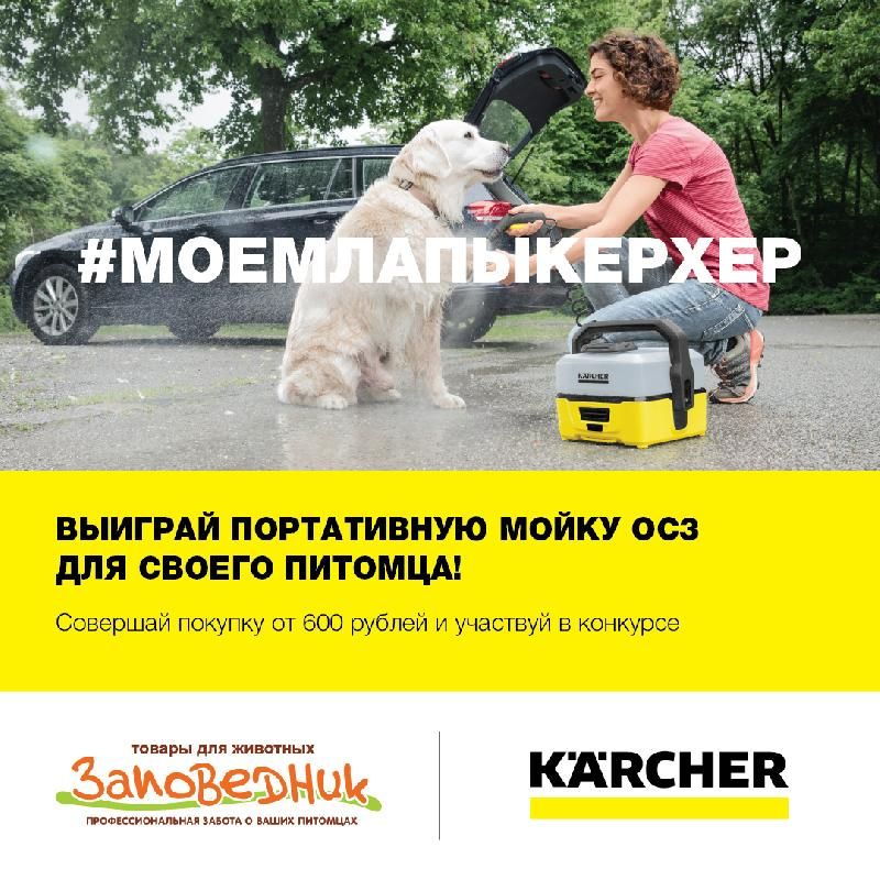 Внимание! Сеть зоомагазинов "Заповедник" совместно с karcher_russia объявляют конкурс!